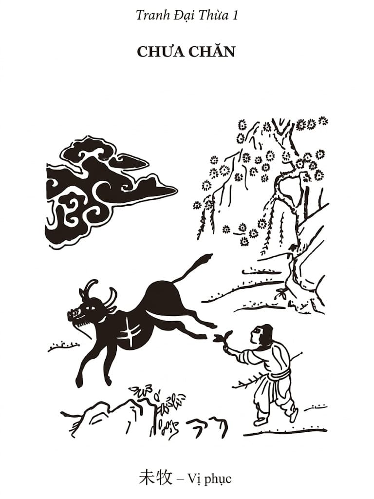 Trâu tánh còn ngông cuồng, đầu sừng ngang ngạnh chạy càn chạy bướng, vừa chạy vừa kêu rống om sòm. Nó lội qua suối băng qua non, bất kể núi cao suối sâu, càng chạy nó càng xa chủ xa chuồng, đi bừa vào lúa mạ người.